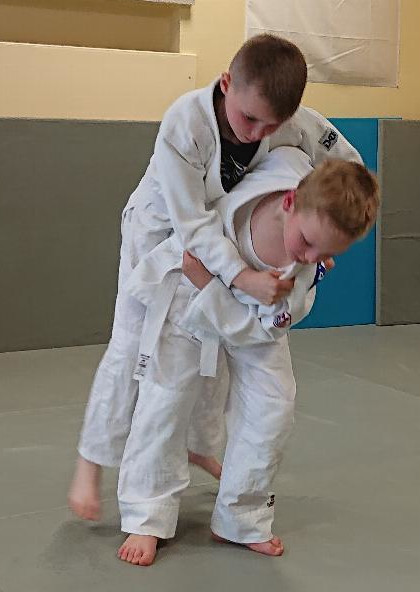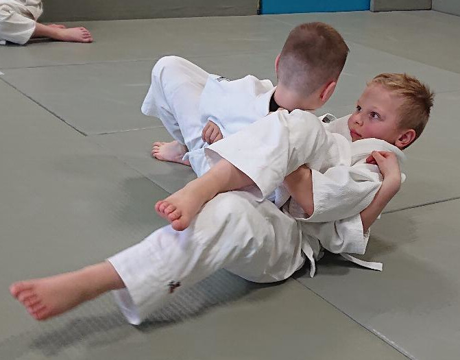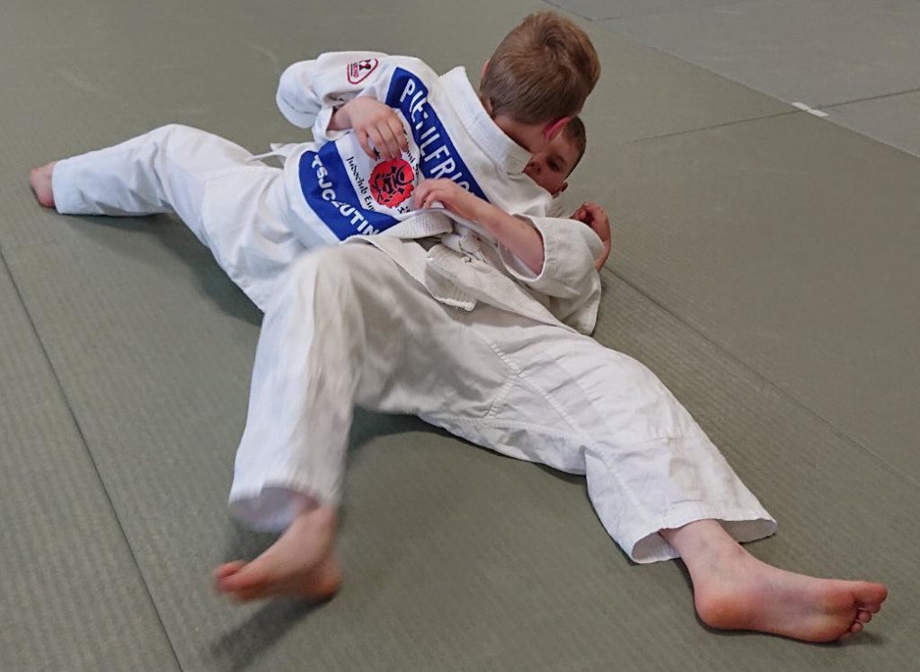 Zum Schluss der Prüfung nachdem die Grundformen und Anwendungsaufgaben im Stand und Boden abgenommen waren, zeigten die 4 Kandidaten im Randori (Übungskampf) ihre erlernten Kenntnisse.