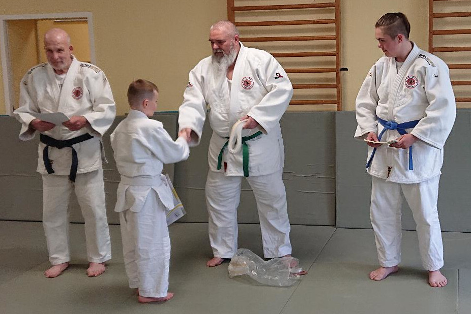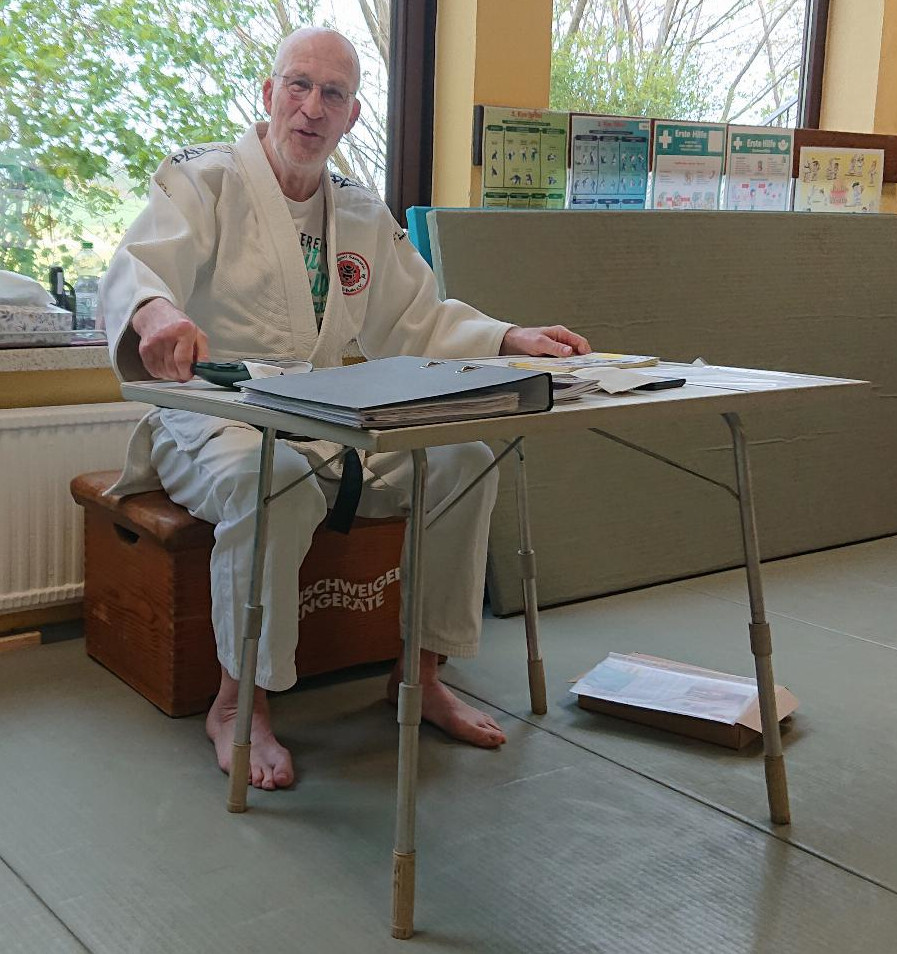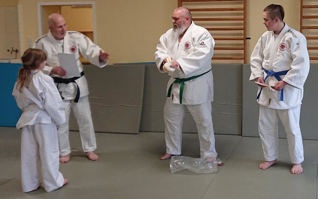 Gezeigt werden musste nicht nur der praktische Teil in Form von Würfen, Haltern und Befreiungstechniken, sondern auch das theoretische Wissen wurden von dem Prüfer Helmut Hass abgefragt.