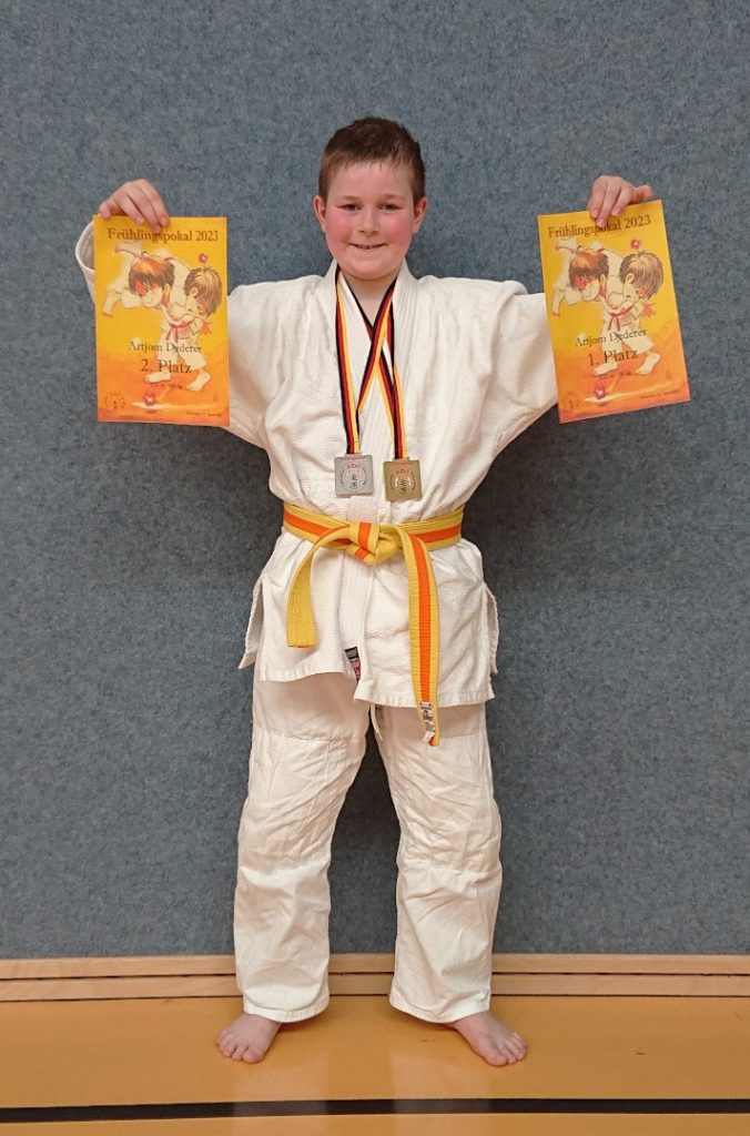 Artjom Dederer trat ebenfalls in der U11 gegen 2 weitere Kontrahenten an und belegte den 2. Platz. Davon nicht genug nutzte Artjom seine Gelegenheit, um mit einem Doppelstart in der nächsthöheren Altersklasse U13 weitere Wettkampferfahrungen zu sammeln. Aufgrund der größeren Gewichtsunterschiede entschlossen sich die jeweiligen Trainer, ihre Schützlinge in Freundschaftskämpfen gegeneinander Jeder-gegen-Jeden antreten zu lassen. Artjom konnte 2 Kämpfe für sich entscheiden, unterlag dann aber seinem letzten Gegner (+12 kg).