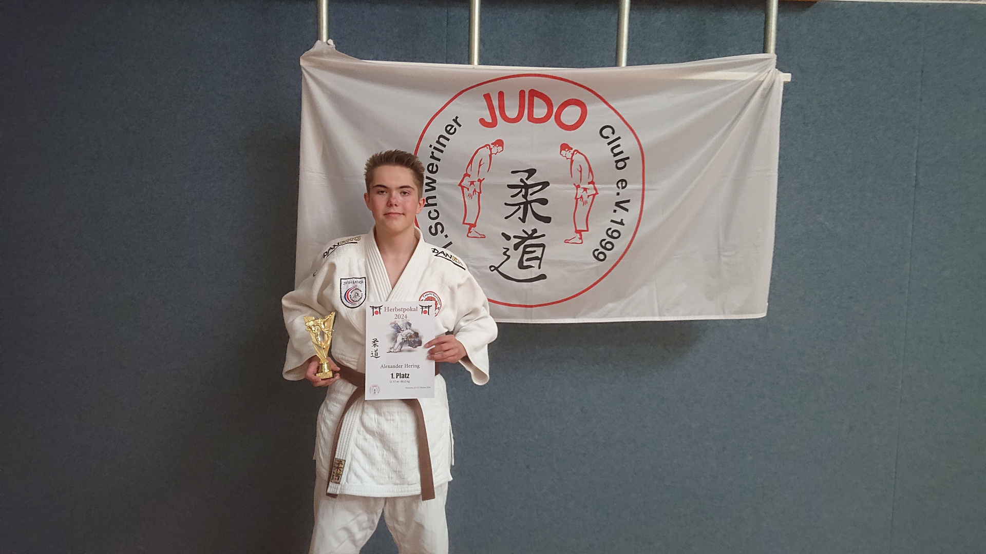 Alexander Hering startete in der Altersklasse U17 -90kg. Er hatte leider nur einen einzigen Gegner, den er aber im Modus Best-of-Three bereits nach 2 Kämpfen jeweils unter einer Minute Kampfzeit mit Ippon besiegen konnte.