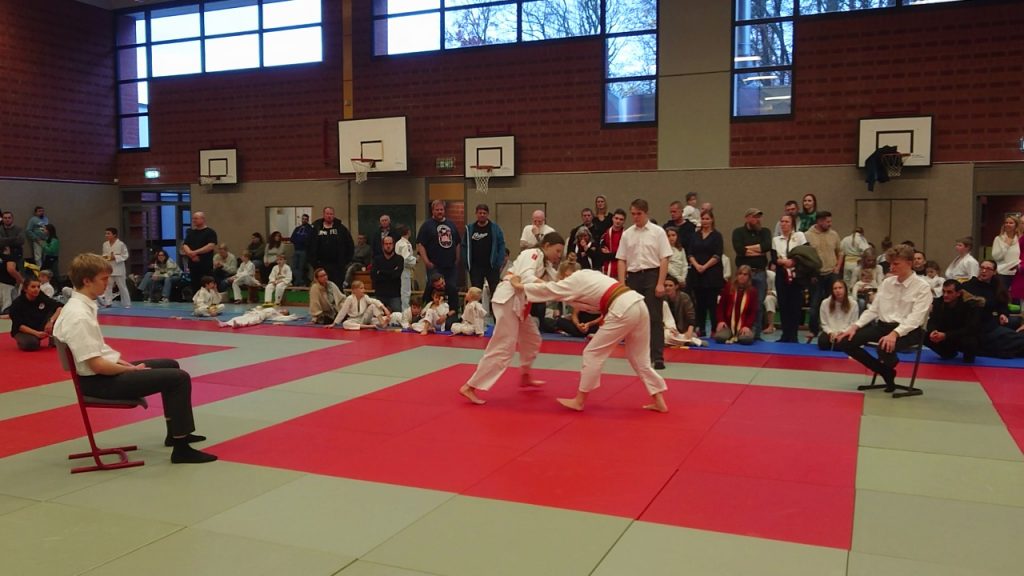 Mit insgesamt 150 Teilnehmern aus 7 Vereinen war es ein stark besuchtes Turnier, auf dem gerade die Anfänger und Einsteiger mit noch nicht so viel Turniererfahrung auf ihre Kosten kamen. Gekämpft wurde auf 3 Matten in gewichtsnahen Pools mit max. 4 Teilnehmern.