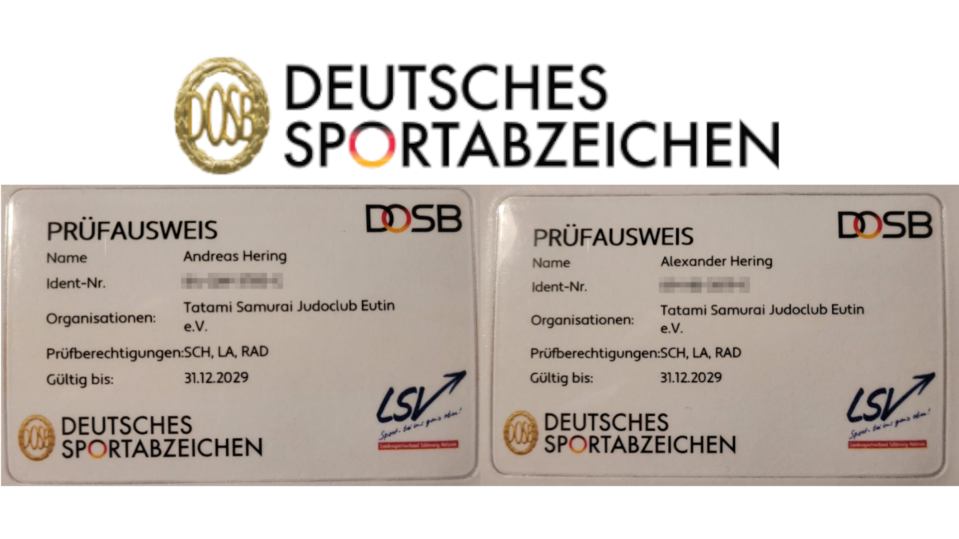 Seit dem 23. April 2025 stehen zwei weitere lizensierte Prüfer für das Deutsche Sportabzeichen nun auch für den Tatami Samurai Judoclub Eutin e. V. zur Verfügung.