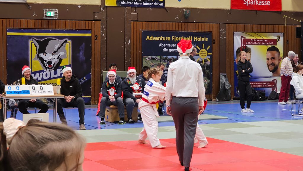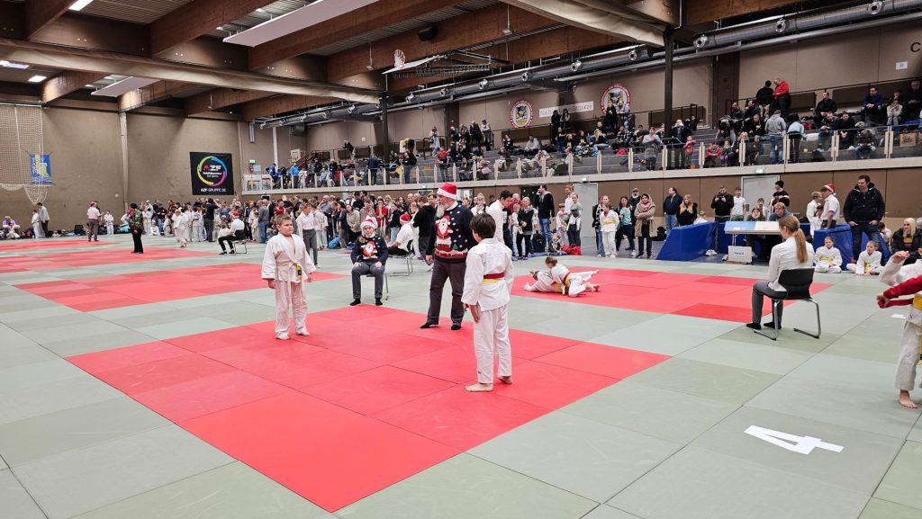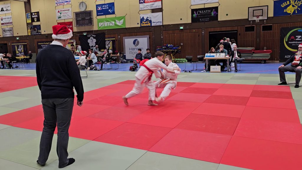 Am 30.11.2024 fand das zunächst letzte Judoturnier der Saison in Tarp statt. In weihnachtlichem Ambiente hatte der TSV Tarp die Treenehalle mit 5 Wettkampfmatten für die über 450 teilnehmenden Judoka der Altersgruppen U09, U11, U13, U15, U18 und M&F hergerichtet.