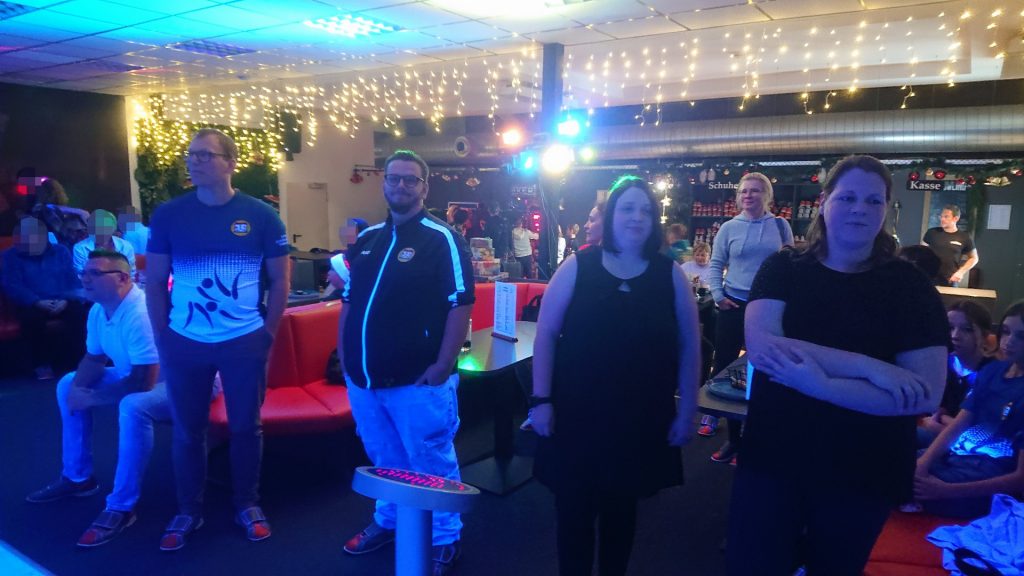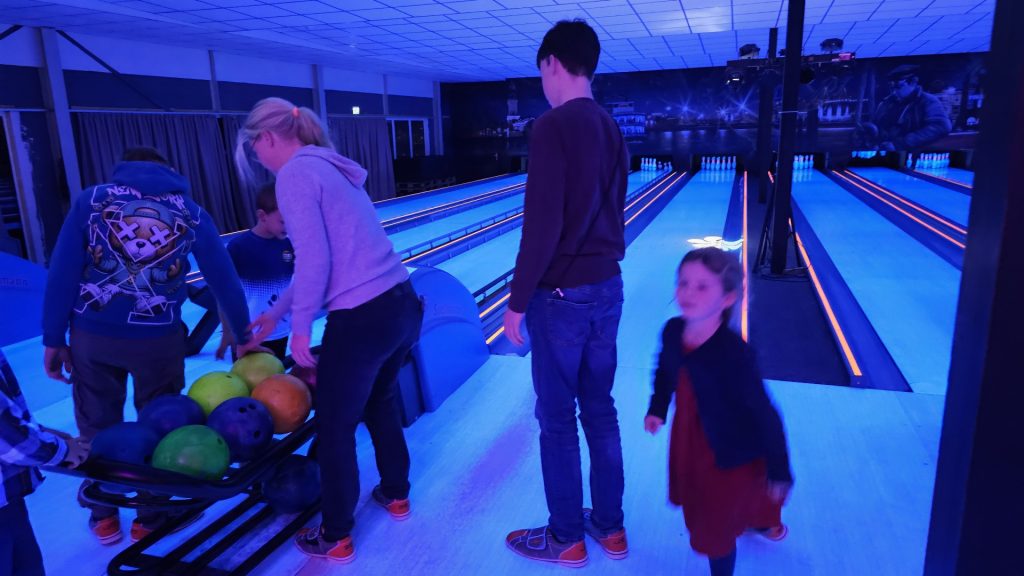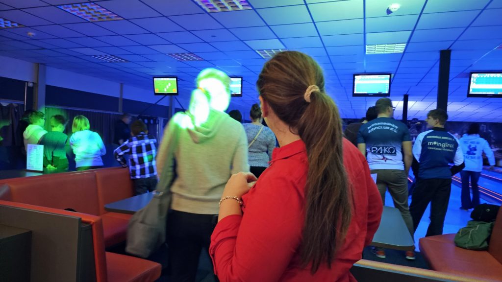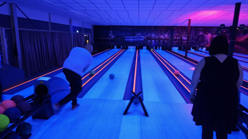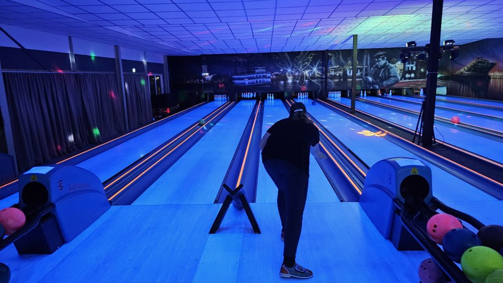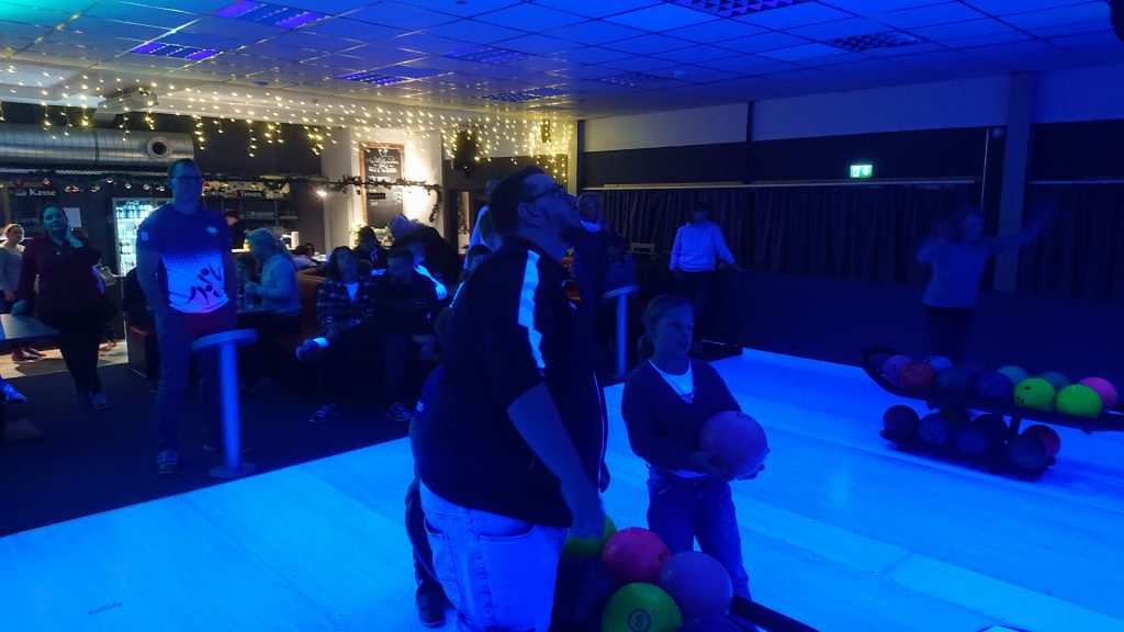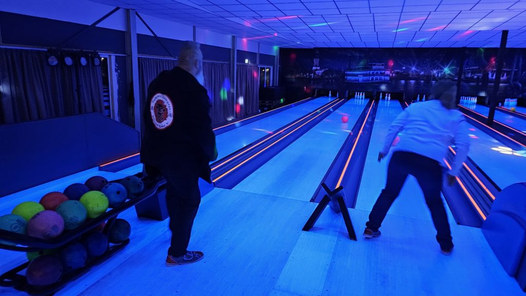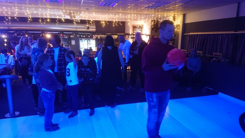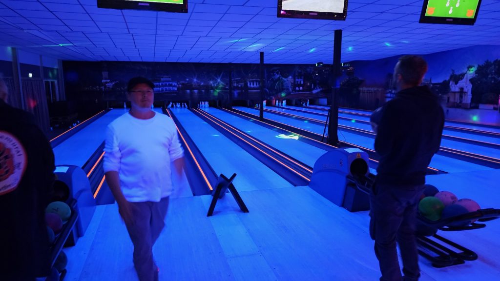 Nachdem zunächst die Schuhe ihren Weg an die passenden Füsse fanden, musste in den 2 Stunden der eine oder die andere sich vor Lachen „kugeln“, wenn bei dem Kontrahenten mal wieder eine Kugel in der Rinne landete.