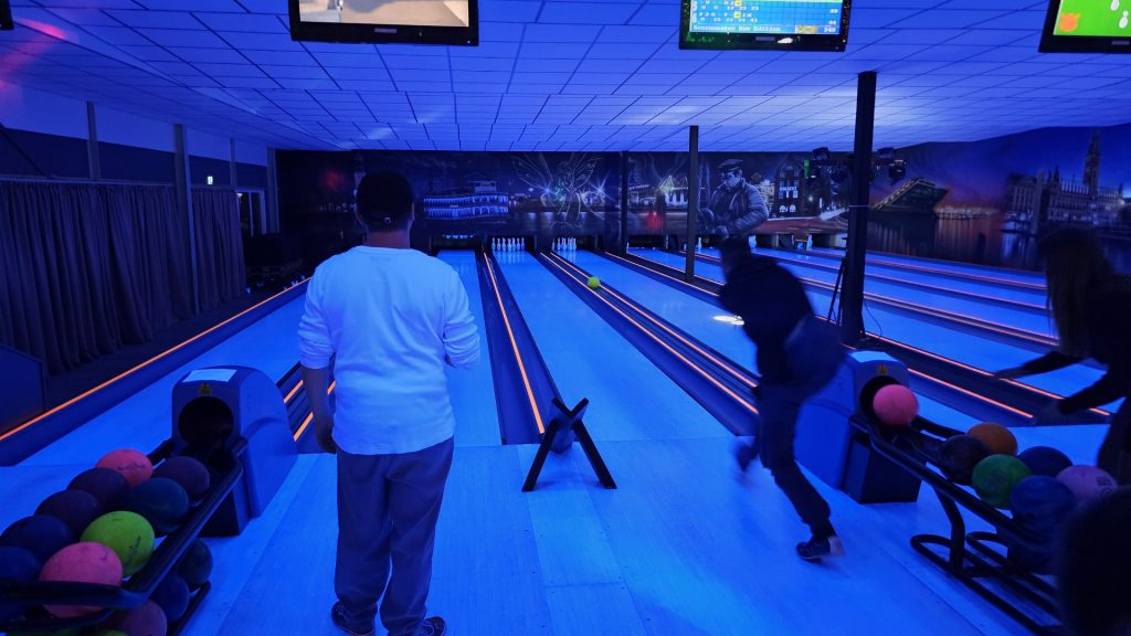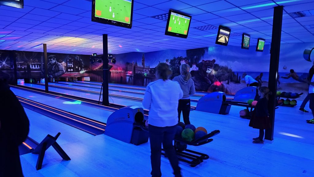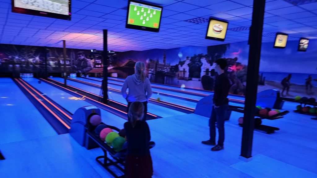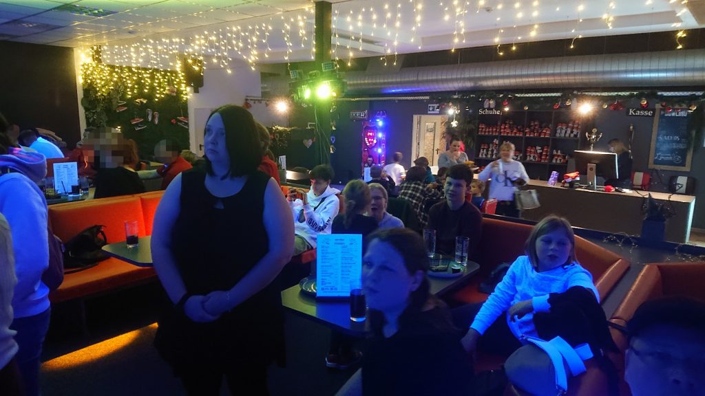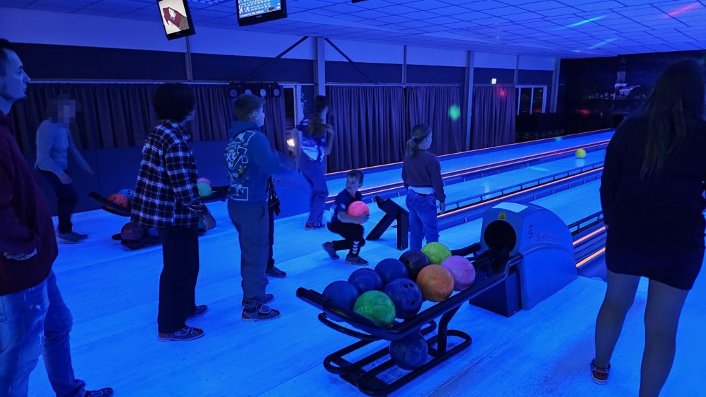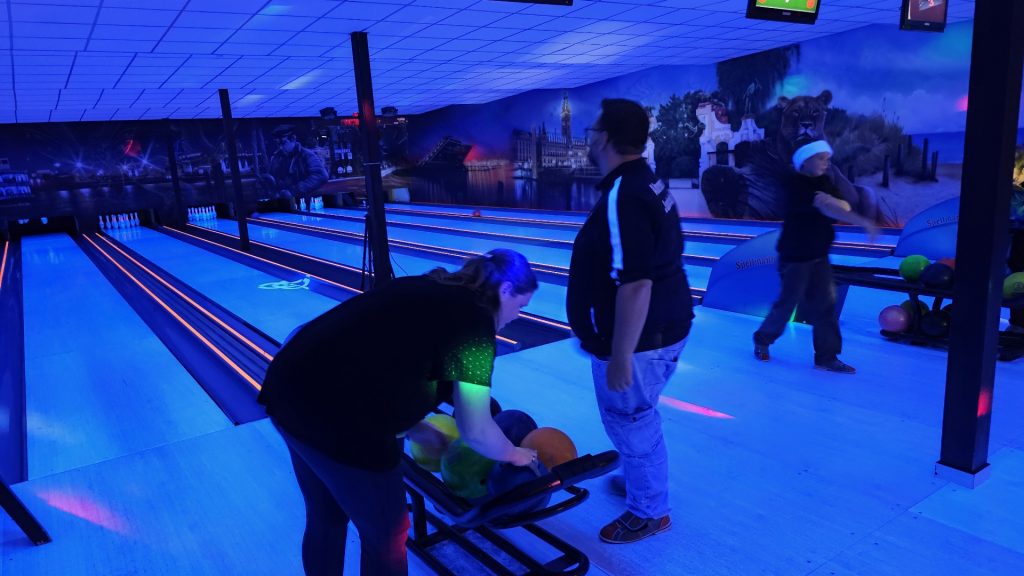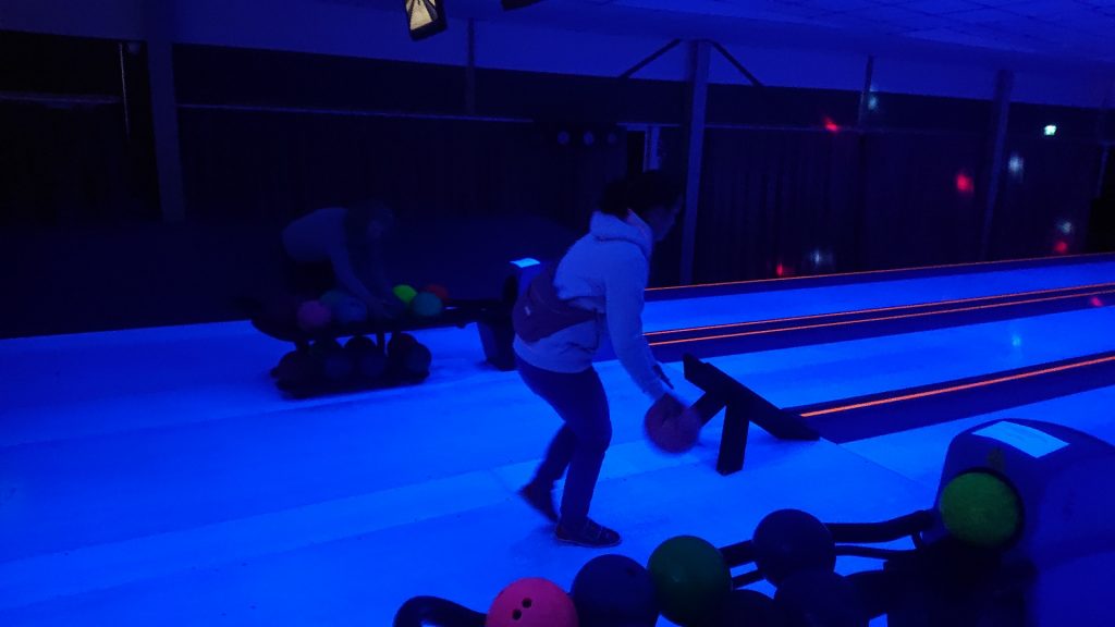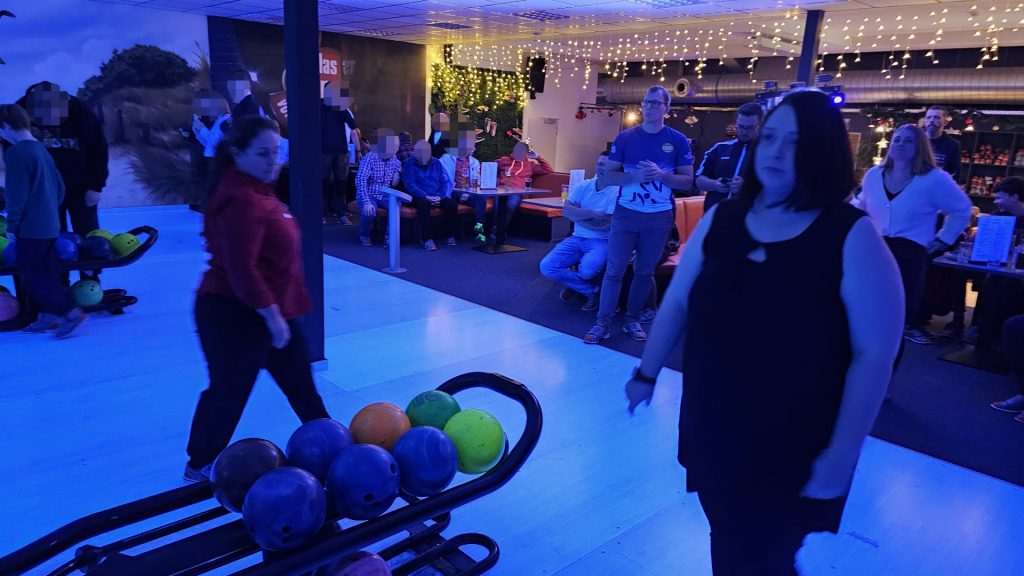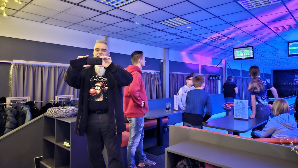 Nachdem zunächst die Schuhe ihren Weg an die passenden Füsse fanden, musste in den 2 Stunden der eine oder die andere sich vor Lachen „kugeln“, wenn bei dem Kontrahenten mal wieder eine Kugel in der Rinne landete.