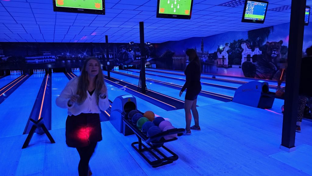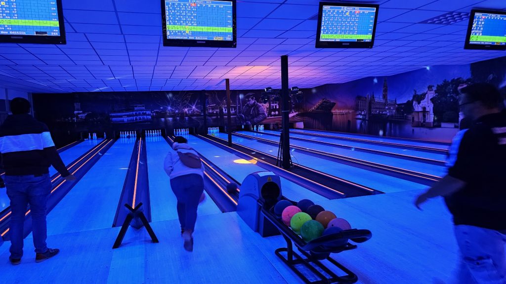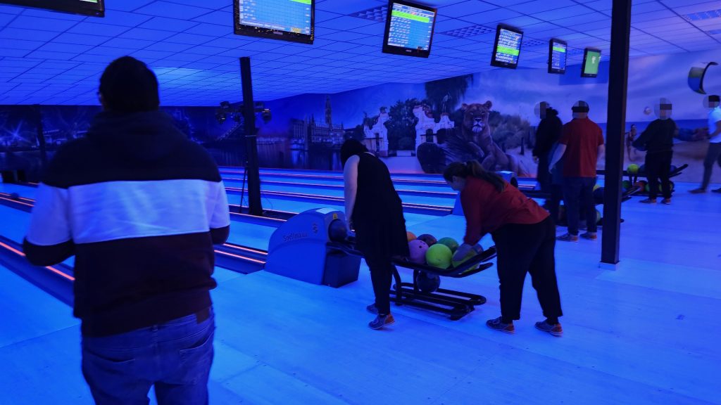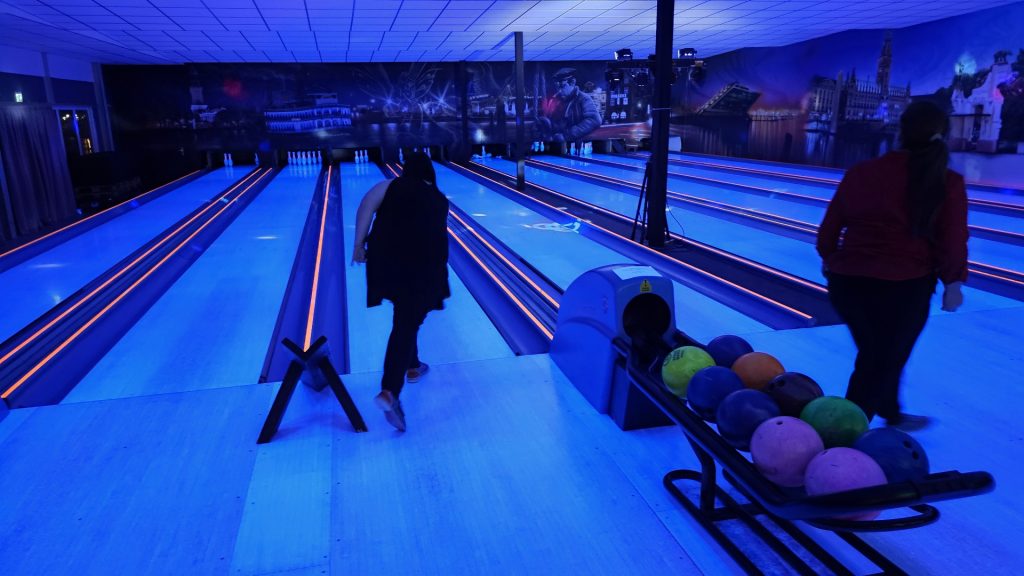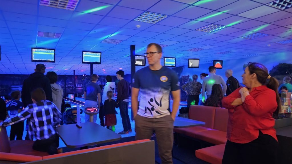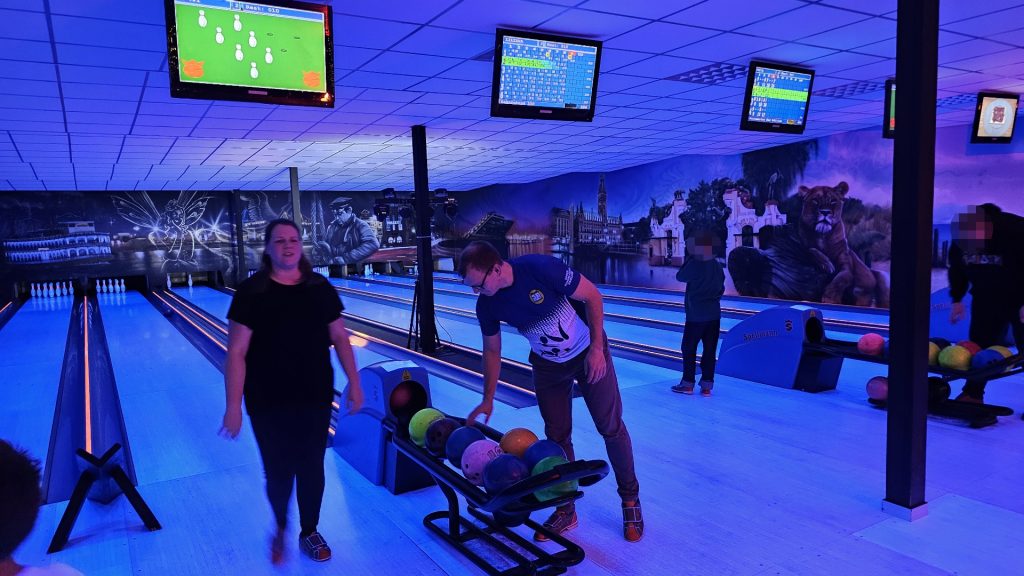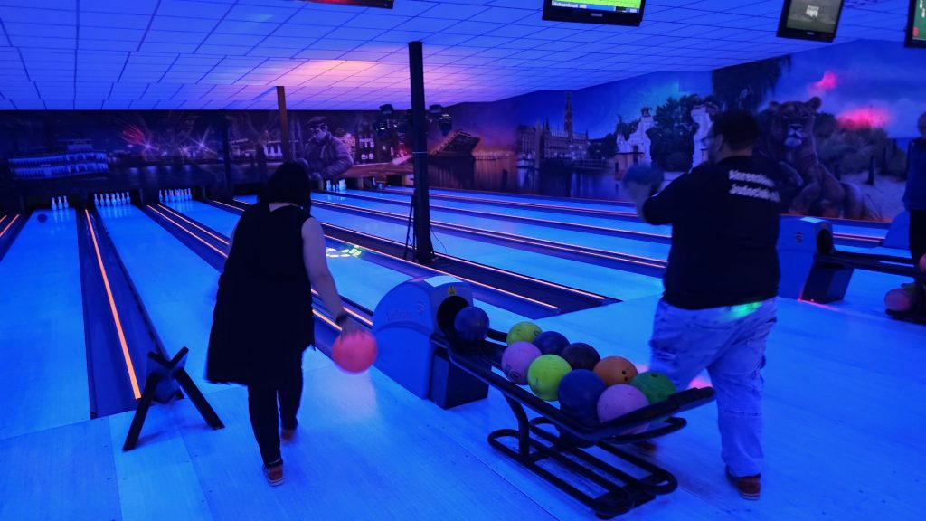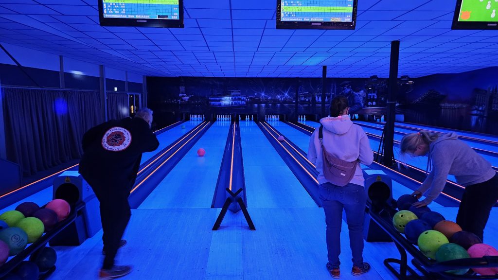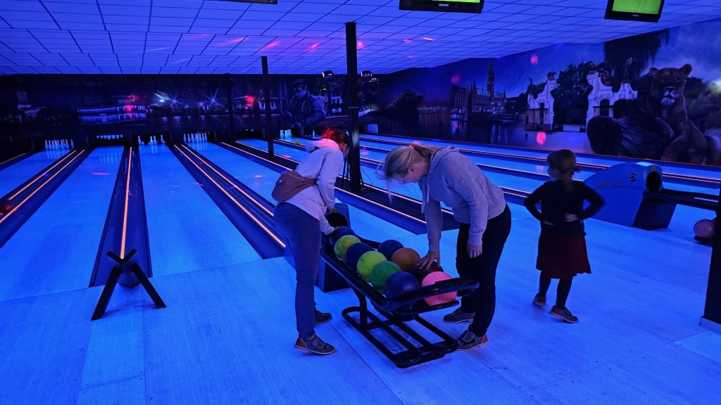 Nachdem zunächst die Schuhe ihren Weg an die passenden Füsse fanden, musste in den 2 Stunden der eine oder die andere sich vor Lachen „kugeln“, wenn bei dem Kontrahenten mal wieder eine Kugel in der Rinne landete.