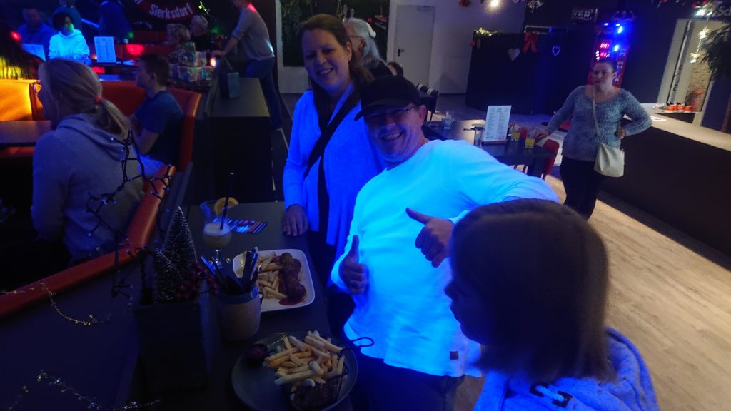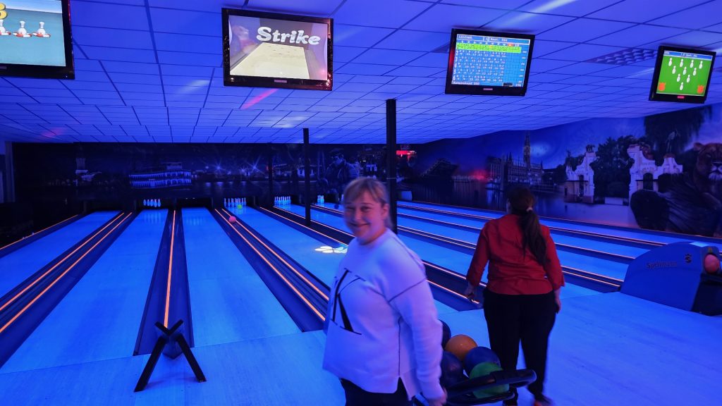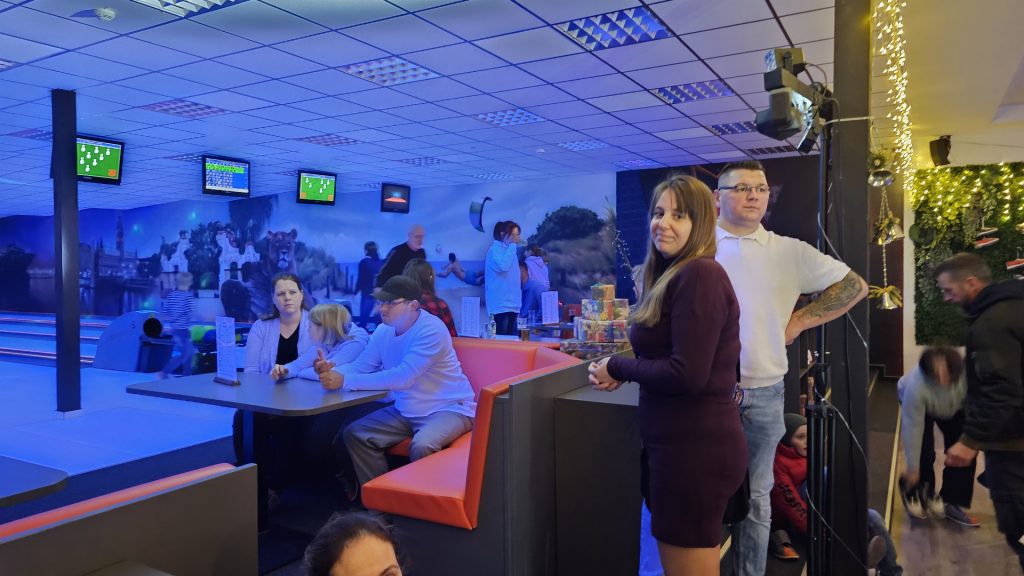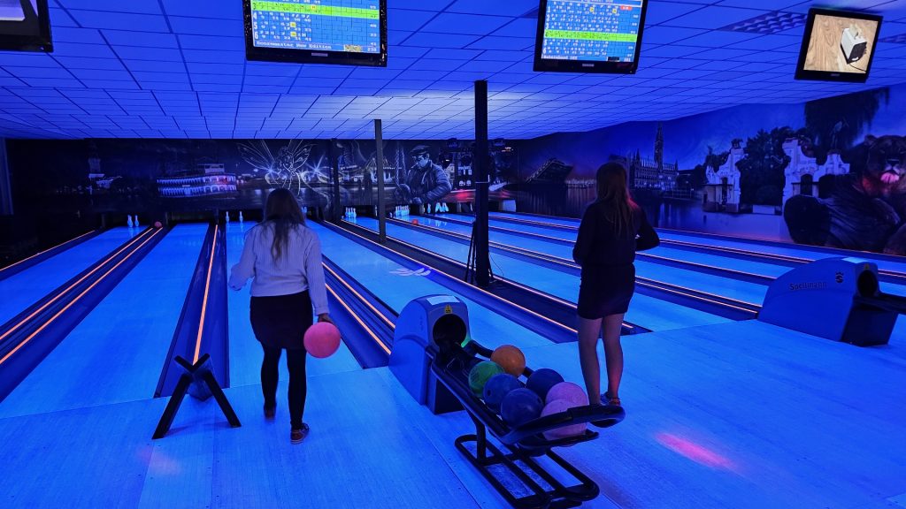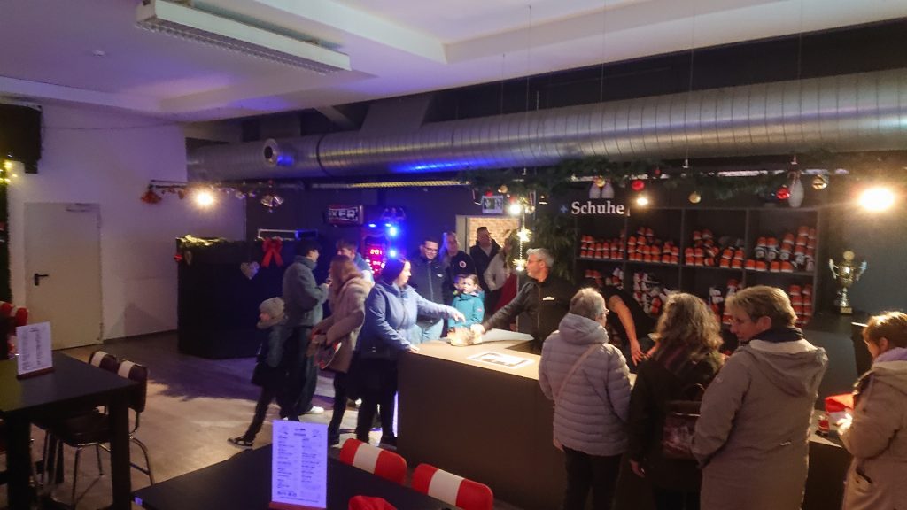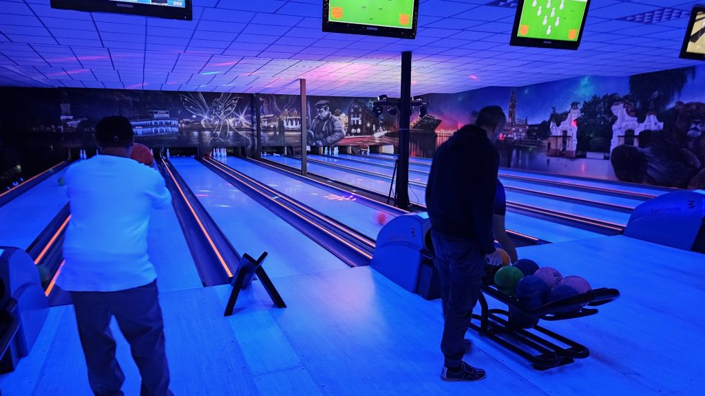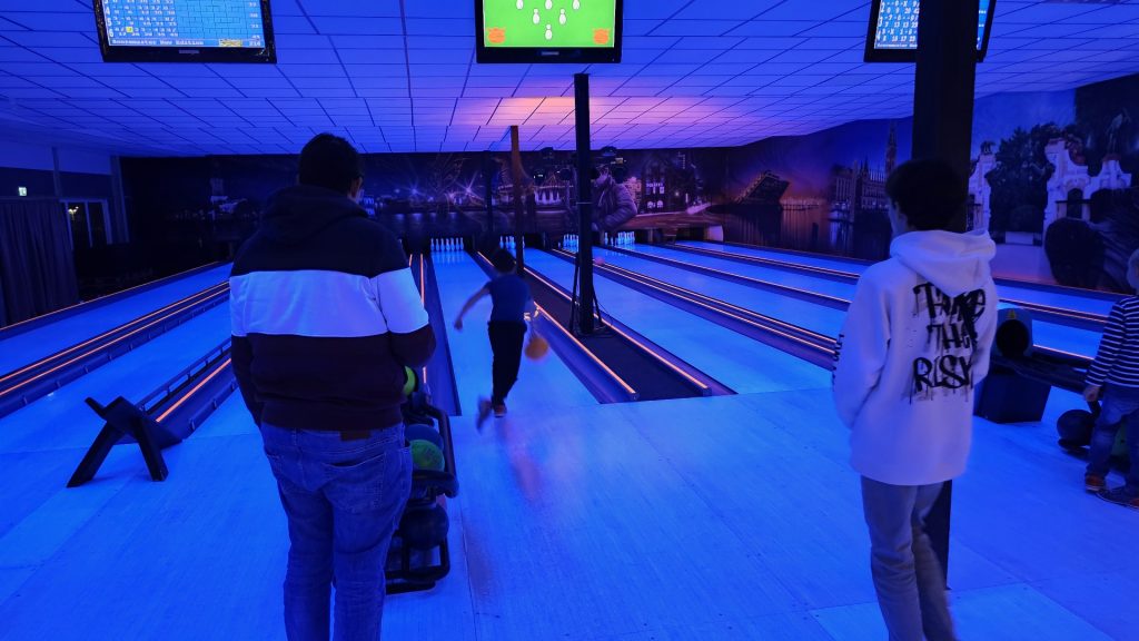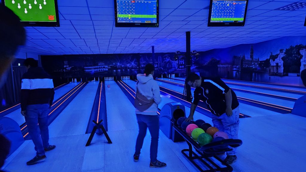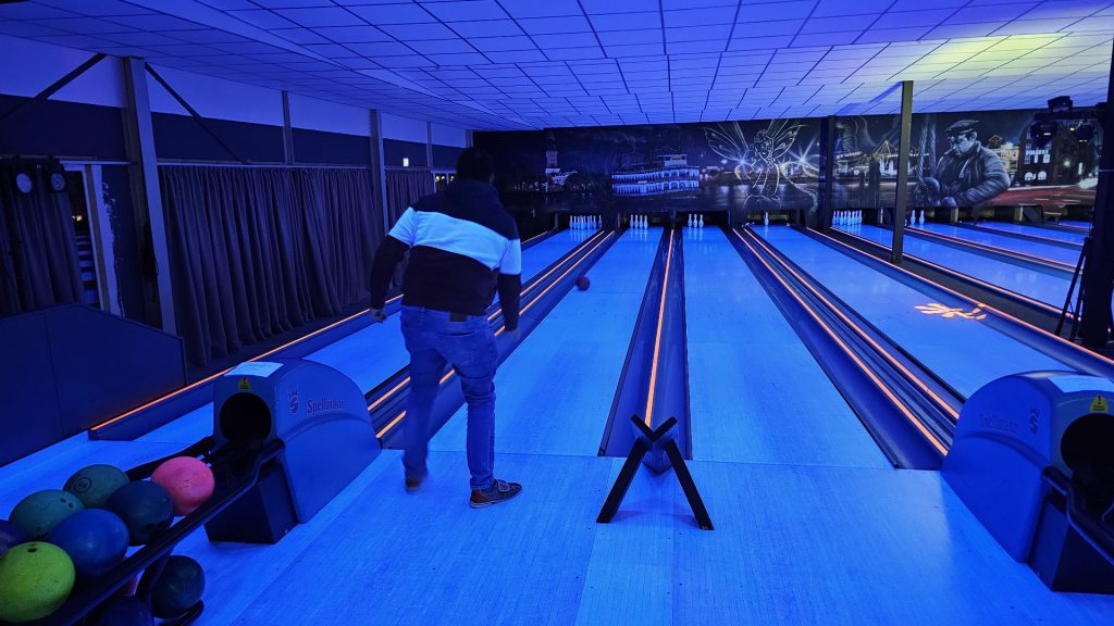 Nachdem zunächst die Schuhe ihren Weg an die passenden Füsse fanden, musste in den 2 Stunden der eine oder die andere sich vor Lachen „kugeln“, wenn bei dem Kontrahenten mal wieder eine Kugel in der Rinne landete.